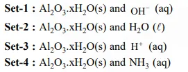 In the following sets of reactants which two sets best exhibit the amphoteric character of $\mathrm{Al}_{2} \mathrm{O}_{3} \cdot \mathrm{xH}_{2} \mathrm{O}$ ?