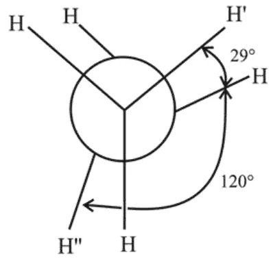 $\therefore$ Angle between $\mathrm{H}^{\prime}$ and $\mathrm{H}^{\prime \prime}=120^{\circ}+29^{\circ}=149^{\circ}$