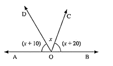 ∠AOD = (x + 10)°, ∠COD = x°, ∠BOC = (x + 20)°