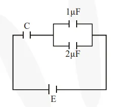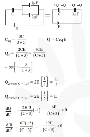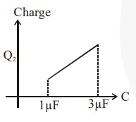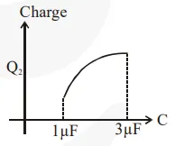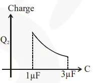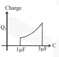 In the given circuit, charge $\mathrm{Q}_{2}$ on the $2 \mu \mathrm{F}$ capacitor changes as $\mathrm{C}$ is varied from $1 \mu \mathrm{F}$ to $3 \mu \mathrm{F}$. $\mathrm{Q}_{2}$ as a function of ' $\mathrm{C}^{\prime}$ is given properly by : (figures are drawn schematically and are not to scale):-