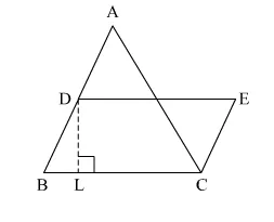 In the given figure, a ∆ABC has been given in which AB = 7.5 cm, AC = 6.5 cm and BC = 7 cm. On base BC, a parallelogram DBCE of the same area as that of ∆ABC is constructed. Find the height DL of the parallelogram.