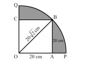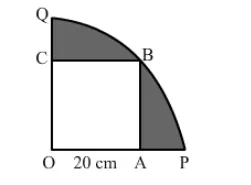 In the given figure, a square OABC has been inscribed in the quadrant OPBQ. If OA = 20 cm, then the area of the shaded region is