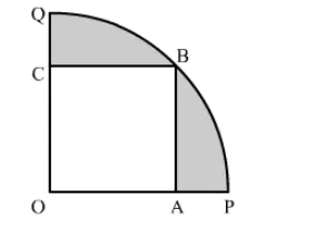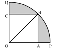 Area of the shaded region = Area of quadrant OPBQ − Area of Square OABC