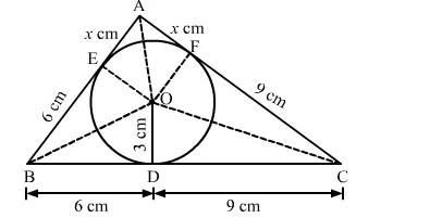 AE = AF, BD = BE = 6 cm and CD = CF = 9 cm