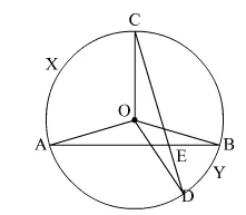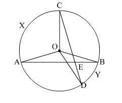 Hence, $\angle A E C=\frac{1}{2}$ (angle subtended by arc $C X A$ at the centre $+$ angle subtended by arc $D Y B$ at the centre).