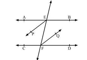 Thus, the lines EP and FQ are intersected by a transversal EF such that the pair of alternate interior angles formed are equal.
