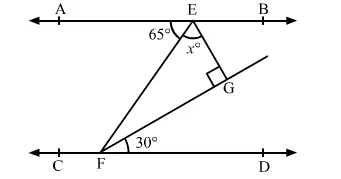 In the given figure, AB || CD and EF is a transversal. If ∠AEF = 65°, ∠DFG = 30°, ∠EGF = 90° and ∠GEF = x°, find the value of x.