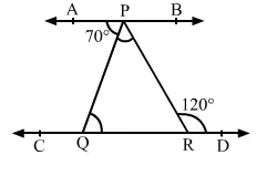 $\therefore \angle P Q R=\angle A P Q=70^{\circ} \quad$ [Alternate Interior Angles]