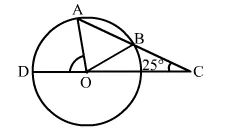 In the given figure, AB is a chord of a circle with centre O and AB is produced to C such that BC = OB. Also, CO is joined and produced to meet the circle in D. If ∠ACD = 25°, then ∠AOD = ?