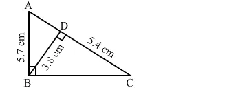 In the given figure, ∠ABC = 90° and BD ⊥ AC. If AB = 5.7 cm, BD = 3.8 cm and CD = 5.4 cm, find BC.