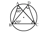 In the given figure, ∆ABC and ∆DBC are inscribed in a circle such that ∠BAC = 60° and ∠DBC = 50°.