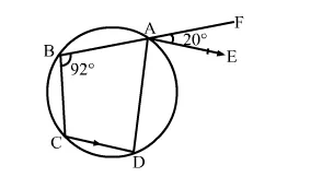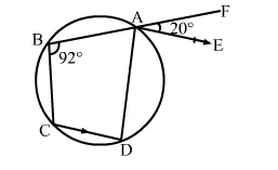 In the given figure, ABCD is a cyclic quadrilateral in which AE is drawn parallel to CD, and BA is produced. If ∠ABC = 92° and ∠FAE = 20°, find ∠BCD.