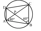 In the given figure, ABCD is a cyclic quadrilateral whose diagonals intersect at P such that ∠DBC = 60° and ∠BAC = 40°. Find