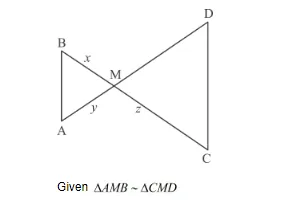 In the given figure, ∆AMB ∼ ∆CMD; determine MD in terms of x, y and z.