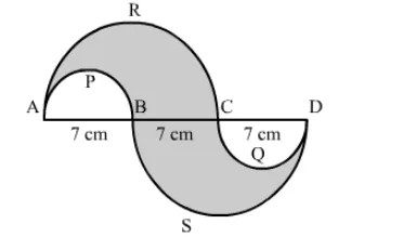 In the given figure, APB and CQD are semicircles of diameter 7 cm each, while ARC an BSD are semicircles of diameter 14 cm each. Find the