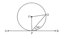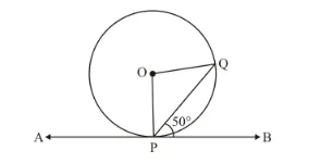 In the given figure, APB is a tangent to a circle with centre O at point P. If ∠QPB = 50°, then the measure of ∠POQ is