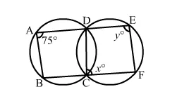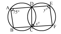 In the given figure, ∠BAD = 75°, ∠DCF = x° and ∠DEF = y°. Find the values of x and y.