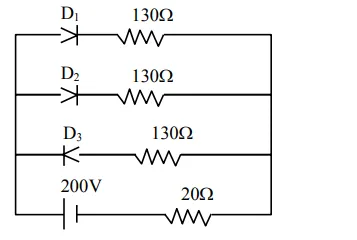 As per diagram, Diode D1 & D2 are in forward bias i.e. R = 30: whereas diode D3 is in reverse bias i.e. R = infinite