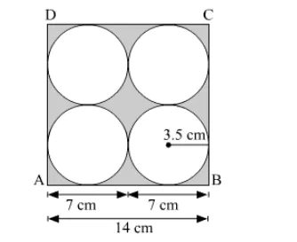 Area of the circles $=4 \times \pi \times 3.5 \times 3.5=154$ sq. $\mathrm{cm}$