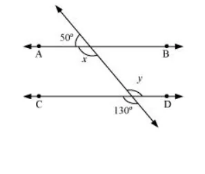 Also, $y=130^{\circ}$ (Vertically opposite angles)