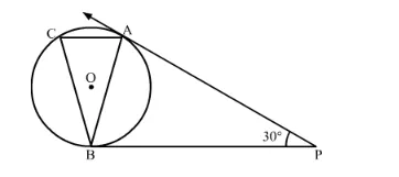 In the given figure, if tangents PA and PB are drawn to a circle such that ∠APB = 30° and chord AC is drawn parallel to the tangent PB, then ∠ABC =