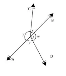 In the given figure, if $x+y=w+z$, then prove that $\mathrm{AOB}$ is a line.