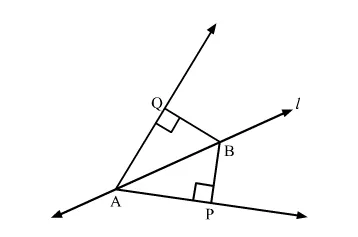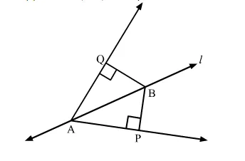 In the given figure, line l is the bisector of an angle ∠A and B is any point on l. If BP and BQ are perpendiculars from B to the arms of ∠A, show that
