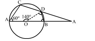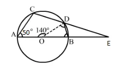 O is the centre of the circle where ∠AOD = 140° and ∠CAB = 50°.