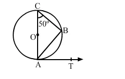 In the given figure, O is the centre of a circle. AOC is its diameter, such that ∠ACB = 50°. If AT is the tangent to the circle at the point A, then ∠BAT = ?