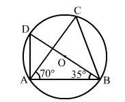 In the given figure, O is the centre of the circle. If ∠ABD = 35° and ∠BAC = 70°, find ∠ACB.