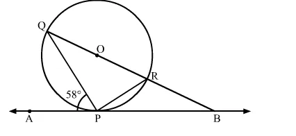 In the given figure, O is the centre of the circle. AB is the tangent to the circle at the point P. If ∠APQ = 58∘ then the measue of ∠PQB is [CBSE 2014]