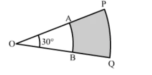 Area of the shaded portion = Area of sector OPQ − Area of sector OAB