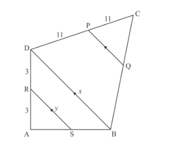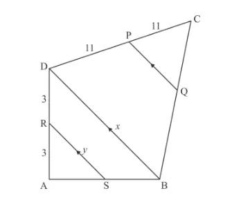 In the given figure, RS || DB || PQ. If CP = PD = 11 cm and DR = RA = 3 cm. Then the values of x and y are respectively.