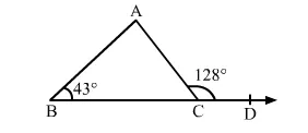 In the given figure, side BC of ∆ABC is produced to D. If ∠ACD = 128° and ∠ABC = 43°, find ∠BAC and ∠ACB.