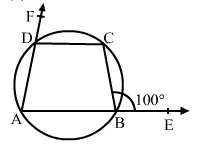 In the given figure, sides AB and AD of quad. ABCD are produced to E and F respectively. If ∠CBE = 100°, then ∠CDE = ?