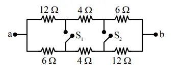 In the given figure switches $S_{1}$ and $S_{2}$ are in open condition. The resistance across ab when the Switches $S_{1}$ and $S_{2}$ are closed is________ $\Omega .$