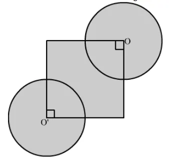 = Area of the square + Area of the two circles − Area of the two quadrants