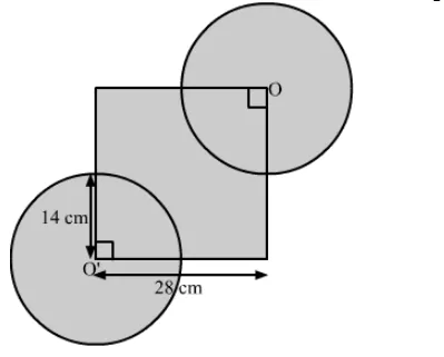 Side of square $=28 \mathrm{~cm}$ and radius of each circle $=\frac{28}{2} \mathrm{~cm}$