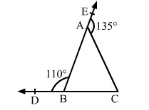 In the given figure, the sides CB and BA of ∆ABC have been produced to D and E, respectively, such that ∠ABD = 110° and ∠CAE = 135°. Then ∠ACB = ?