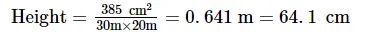 Volume of the rectangular field = 385 m3 = 30 m × 20 m × height