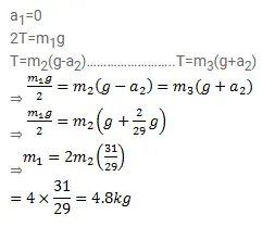 In the previous problem, suppose $m_{2}=2.0 \mathrm{~kg}$ and $m_{3}=3.0 \mathrm{~kg}$. What should be the mass $\mathrm{m}$ so that it remains at rest?