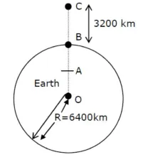 In the reported figure of earth, the value of acceleration due to gravity is same at point $\mathrm{A}$ and $\mathrm{C}$ but it is smaller than that of its value at point $\mathrm{B}$ (surface of the earth). The value of $\mathrm{OA}: \mathrm{AB}$ will be $x: y$. The value of $x$ is