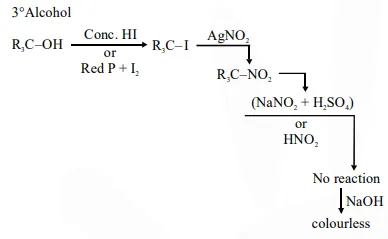 In the Victor-Meyer's test, the colour given by 1°, 2° and 3° alcohols are respectively :-