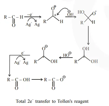 In Tollen's test for aldehyde, the overall number of electron(s) transferred to the Tollen's reagent formula $\left[\mathrm{Ag}\left(\mathrm{NH}_{3}\right)_{2}\right]^{+}$per aldehyde group to form silver mirror is__________ -(Round off to the Nearest integer)