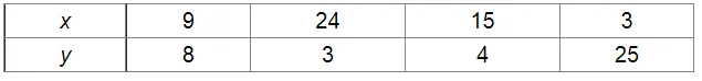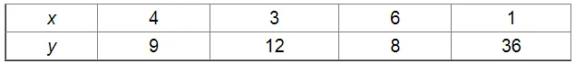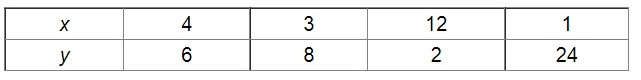 In all cases, the product $x y$ is constant $($ i.e., 24).