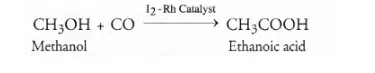 From methanol: These days ethanoic acid is manufactured by the reaction between methanol and carbon monoxide in the presence of iodine-