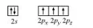 Boron atom in BF3 is sp2 hybridized. The orbital picture of boron in the excited state can be shown as: