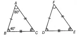 (b) Given, $\triangle A B C \cong \triangle F D E$ and $A B=5 \mathrm{~cm}, \angle B=40^{\circ}, \angle A=80^{\circ}$
