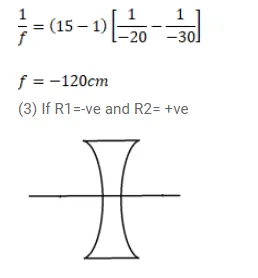 Lenses are constructed by a material of refractive index $1.50$. The magnitude of the radii of curvature are $20 \mathrm{~cm}$ and $30 \mathrm{~cm}$. Find the focal length of the possible lenses with the above specification.