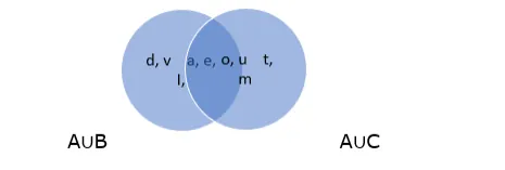 $A^{U} B=\{a, d, e, I, o, u, v\}$ and $A^{U} C=\{a, e, I, o, u, t, m\}$